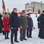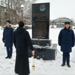 После литии священник вместе с ветеранами боевых действий, родственниками погибших и представителями общественности возложил цветы к обелиску.